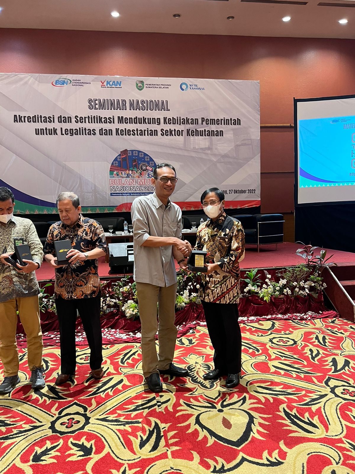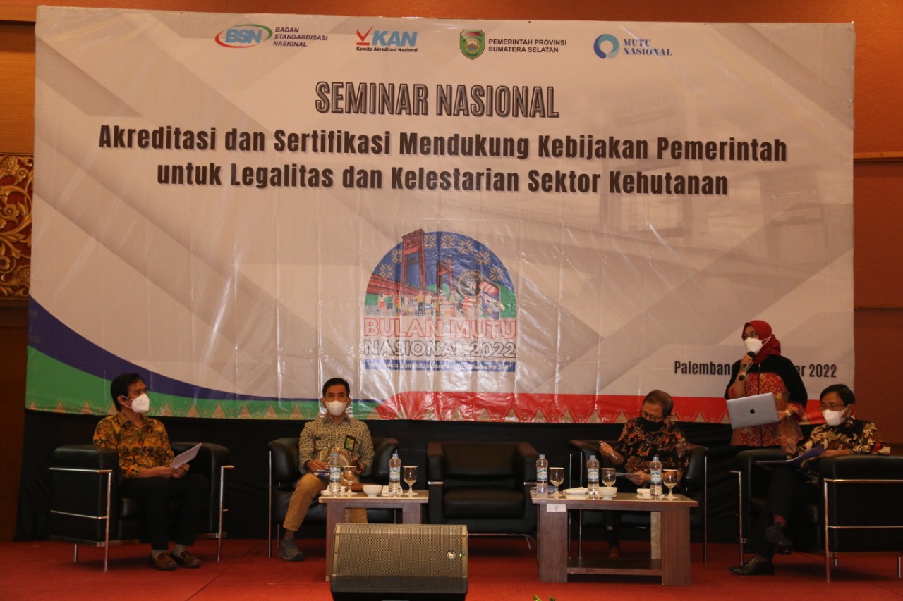 Seminar yang diselenggarakan BSN, KAN dan berkolaborasi dengan Pemprov Sumsel bertujuan untuk memberikan informasi dan sosialisasi terkait dengan Akreditasi dan Sertifikasi Mendukung Kebijakan Pemerintah untuk Legalitas dan Kelestarian Sektor Kehutanan.