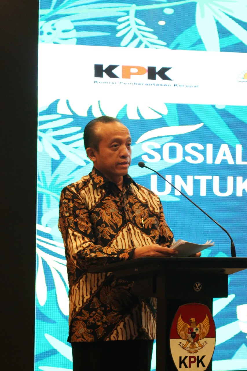 Pada sambutan pembukaan sekaligus membuka rangkaian acara sosialisasi dan pelatihan, pimpinan KPK Laode M. Syarif menyampaikan bahwa sejak awal KPK sadar bahwa korupsi di Indonesia tidak bisa diselesaikan sendiri oleh KPK, karena magnitude-nya sangat besar. “Sebagai contoh, di sektor kehutanan, wilayahnya sangat luas, potensinya berlimpah dengan permasalahan yang kompleks” ujar Laode.