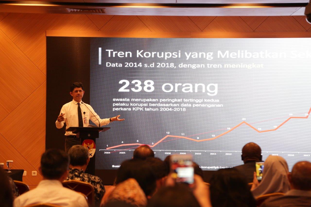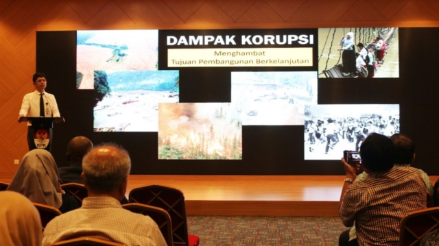 Dalam rangka mendorong tata kelola yang baik dan pencegahan korupsi di kegiatan bisnis kehutanan, Komisi Pemberantasan Korupsi (KPK) bekerja sama dengan Kementerian Lingkungan Hidup dan Kehutanan, Asosiasi Pengusaha Hutan Indonesia ( APHI) serta United Nations Office on Drugs and Crime (UNODC) menyelenggarakan kegiatan Sosialisasi Panduan Pencegahan Korupsi Untuk Dunia Usaha di Gedung Pusat Edukasi Antikorupsi/ACLC KPK, di Jakarta pada hari Senin (25/03). Rangkaian kegiatan ini akan berlangsung selama 3 hari sampai hari Rabu (27/03) dan akan dilanjutkan pelatihan modul pembangunan bisnis berintegritas.