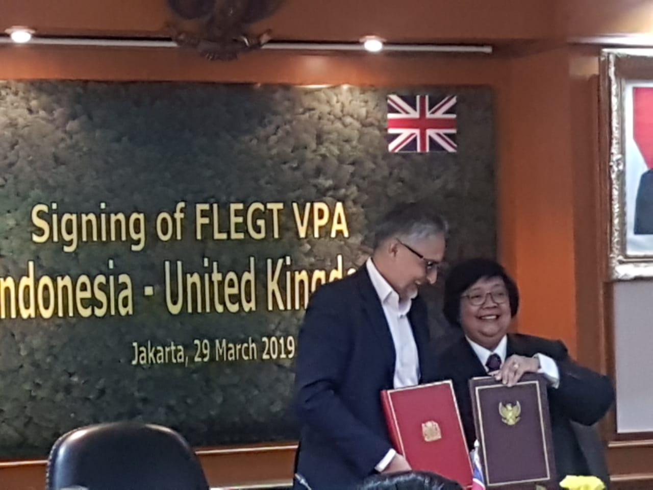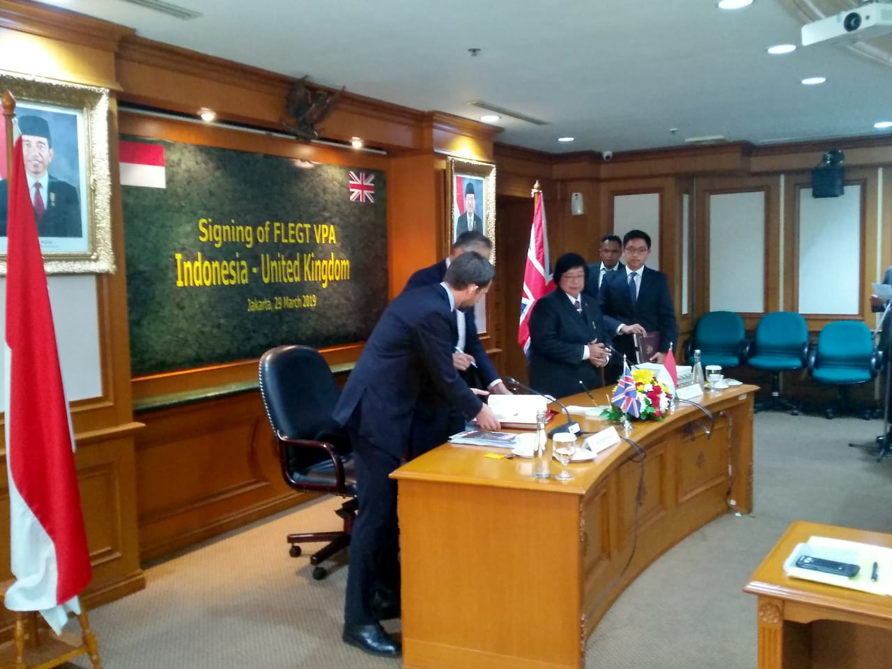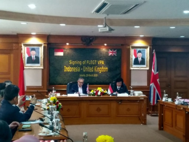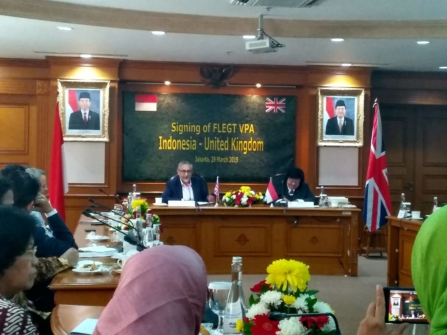 Menteri Lingkungan Hidup dan Kehutanan RI bersama Duta Besar Inggris untuk Indonesia telah melakukan penandatangan perjanjian FLEGT VPA Republik Indonesia-Inggris, di Jakarta pada hari Jumat (29/03). Acara penandatanganan perjanjian ini dihadiri oleh perwakilan duta besar Inggris untuk Indonesia, Perwakilan Kementerian Lingkungan Hidup dan Kehutanan RI, Perwakilan Kementerian Perdagangan RI, Perwakilan Kementerian Luar Negeri RI, Asosiasi bidang kehutanan dan lembaga terkait.