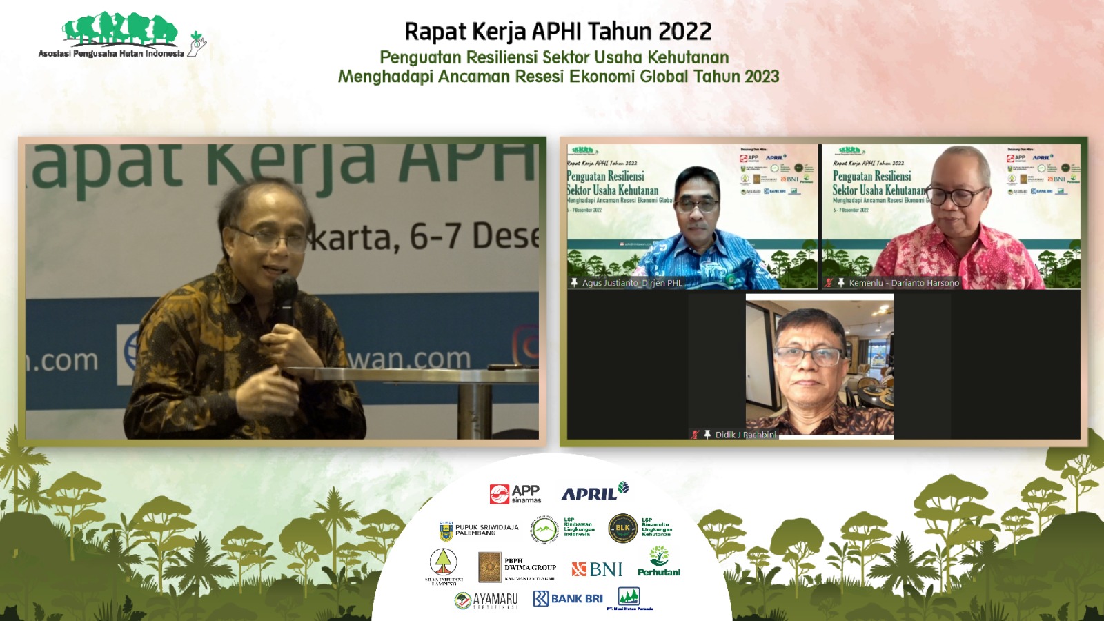 Dalam rangka memperkuat dan mempertajam tema Raker APHI 2022, diselenggarakan Webinar dengan mengundang pihak-pihak dari Kementerian/lembaga yang terkait langsung dengan kegiatan usaha sektor kehutanan, dalam bentuk acara Webinar Raker. ***