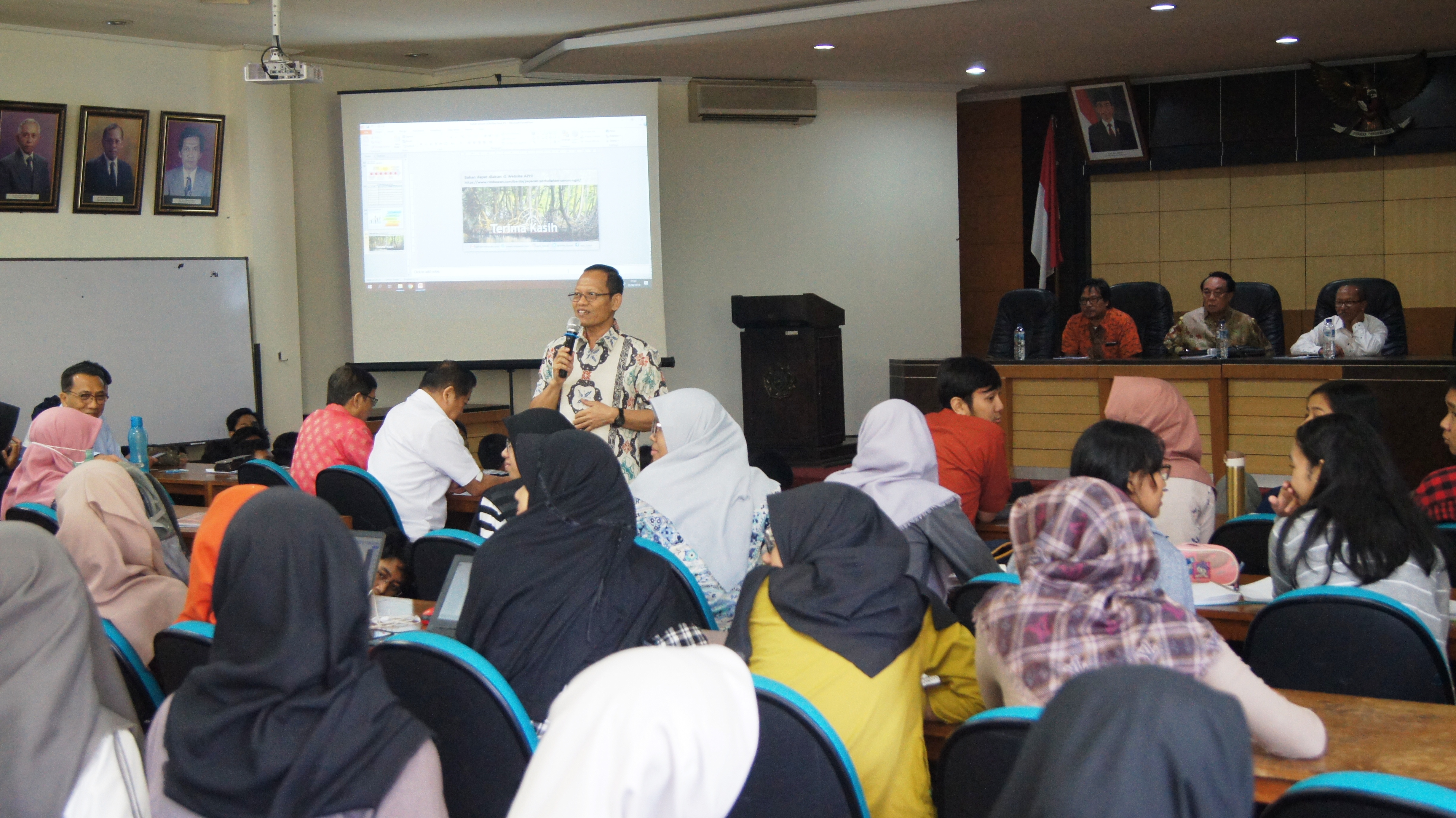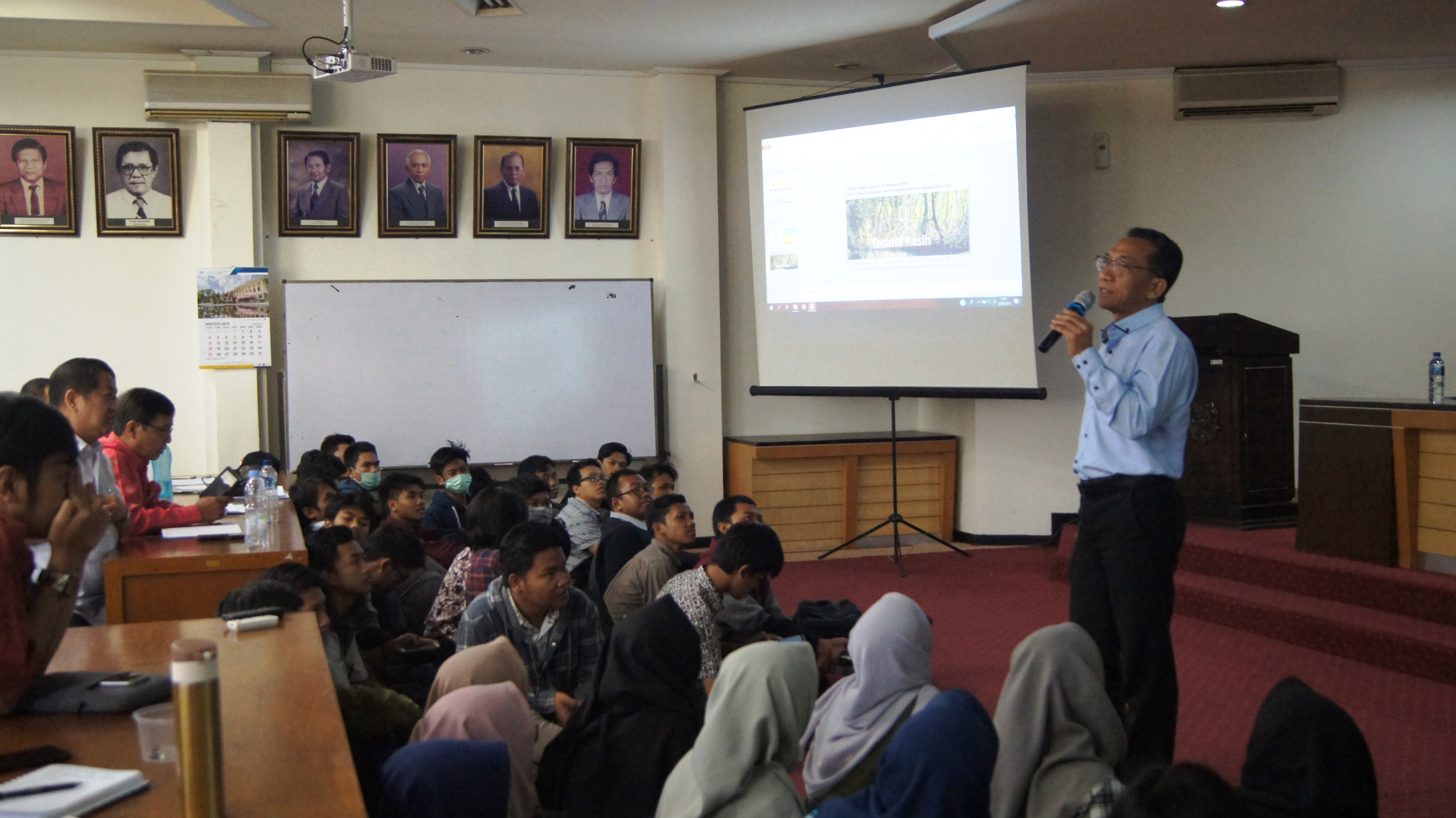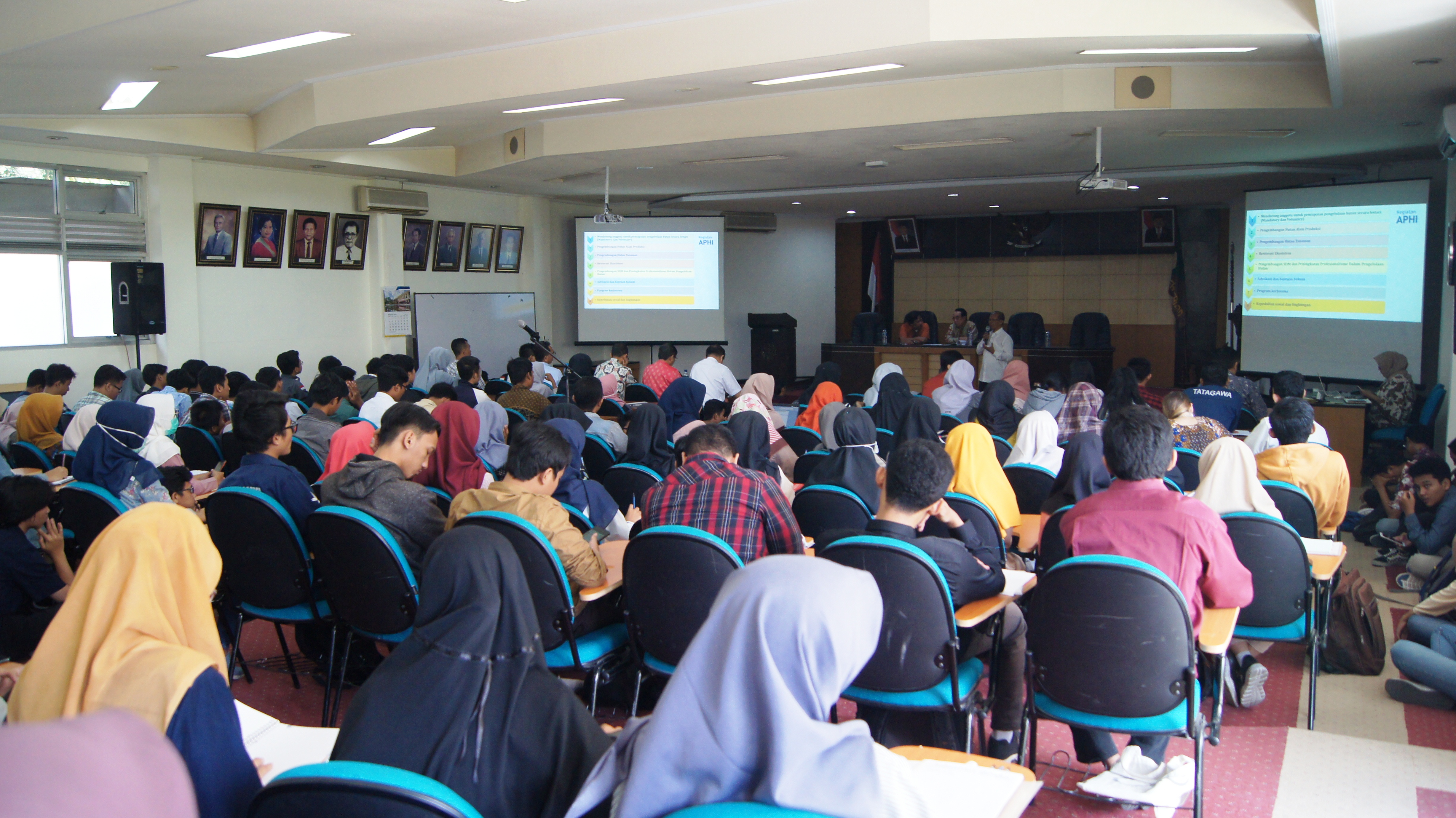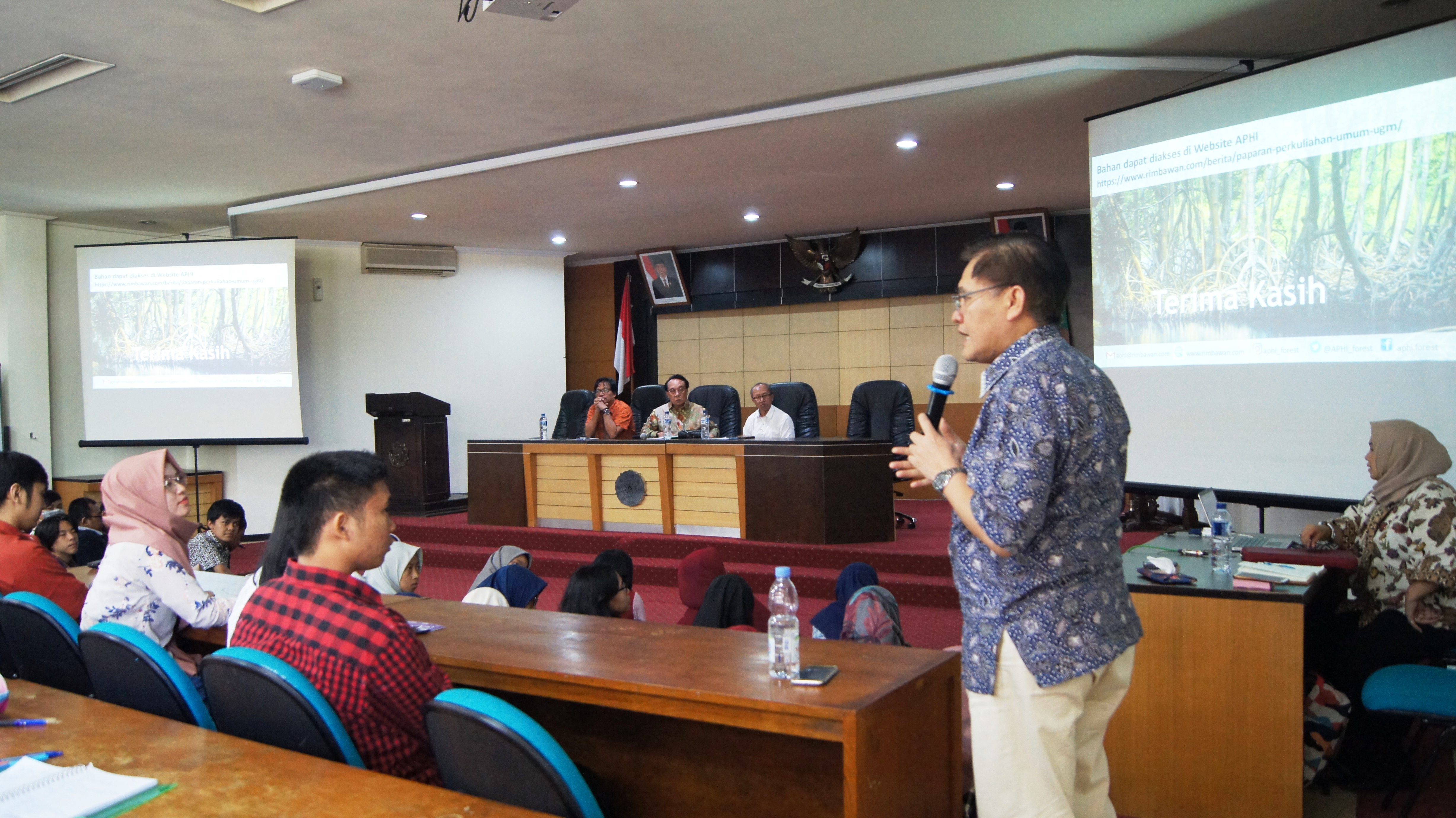 Kuliah Umum mahasiswa Fakultas Kehutanan Universitas Gadjah Mada (UGM) dengan narasumber praktisi kehutanan dari Dewan Pengurus Asosiasi Pengusaha Hutan Indonesia (APHI) diselenggarakan di Auditorium Kampus Fakultas Kehutanan UGM, Yogyakarta pada hari Jumat (23/08).